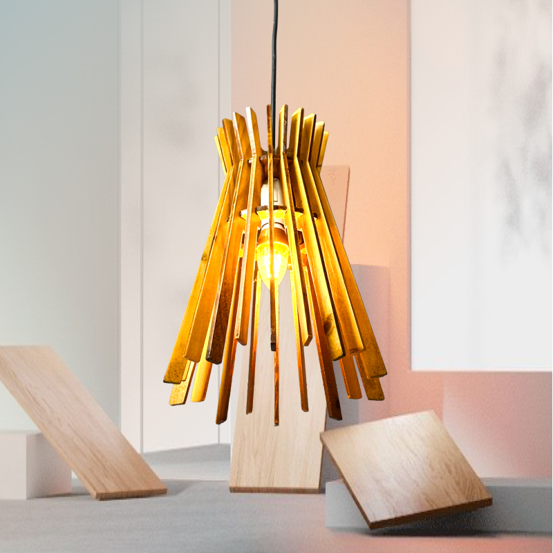 Từ những thanh gỗ tự nhiên được xử lý chống mối mọt, bền màu, thợ thủ công của WSP Decor đã tạo nên một chiếc đèn mang vẻ đẹp mộc mạc nhưng đầy tinh tế.